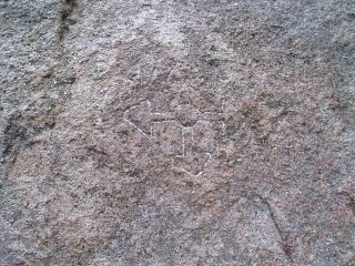 | 甑岩に刻印された池田備中守長幸の家紋 | 甑岩と刻印石の説明板 | |