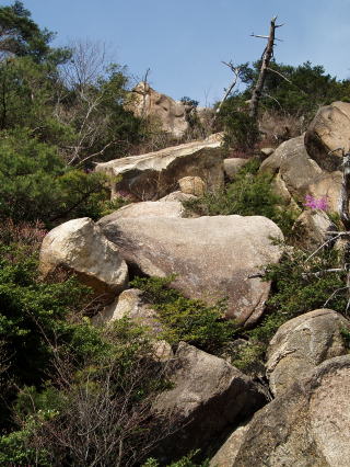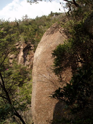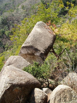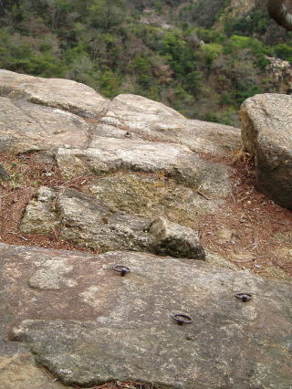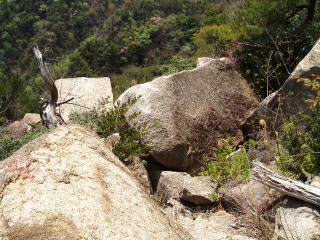 | 破断岩 おそらく阪神大震災で破断した岩と思われる。 これは貴重なサンプルであり 研究対象である。 場所:立て烏帽子の南の下に隣接した岩 |