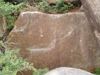 | 亀の首 私も長い間この岩と亀の首との類似性に気づかなかった。しかし、写真を分析しているうちに驚くべき類似性を発見した。 繰り返し同じ岩を見続けると、羊飼いが見出した星座のように、意外なイメージが沸き起こるようである。 場所:岩小屋の屋根の前 |