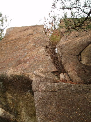 | ミニルーフ 場所:テーブルロックの下 ルート:ここから、コーンフレークスラブまでもと来た道を引き返し、右側に通っている岩梯子の一般登山道に出る。 |