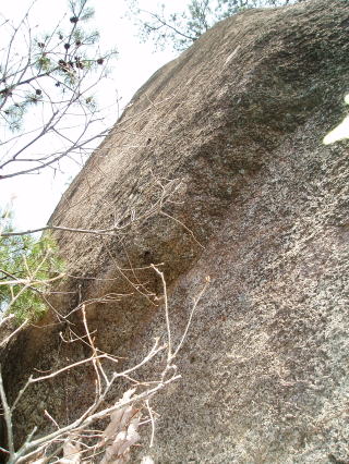 | ビック ボルダー ビックというだけあって、ボルダー群のなかでも最大の見所だ。 場所:岩小屋の下側 |