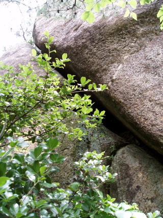 屋根岩 周りを睥睨する屋根岩の貫禄十分。 場所:七右衛門穴 |