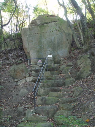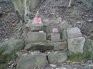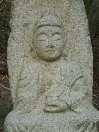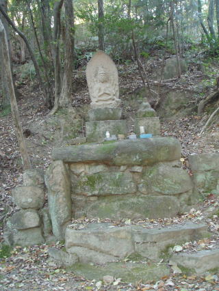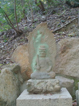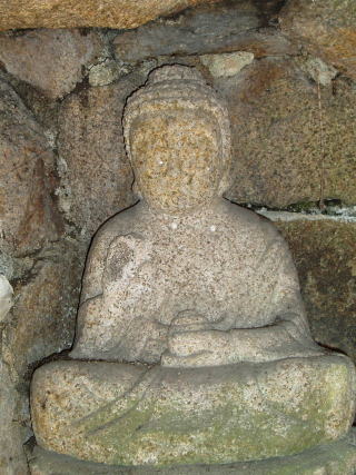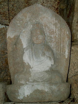 | 石切の矢穴がなまなましい。 | 石仏:薬師如来 | |