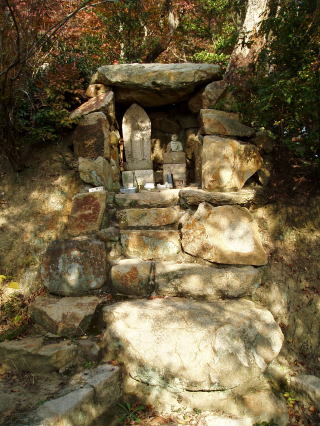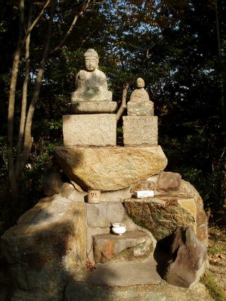 | 第七十三番 出釈迦寺 (しゅっしゃかじ) 出釈迦寺の奥の院のある我拝師山の頂上には、七歳の弘法大師、幼名 真魚(まお)が、「仏道に入り、衆生を救わんとする我が願い、成就するものならば霊験を、さもなくば賭したこの身を諸仏に捧げん」と念じて身を投げた断崖絶壁がある。身を投げた大師は、紫雲と共に現れた釈迦如来と天女によって抱きとめられたという。 本尊:釈迦如来 詠歌 迷いぬる六道衆生すくわんと 尊き山に出ずる釈迦寺 石仏の調査 「神呪寺八十八箇所調査報告書(西宮市文化財資料第四十二号)」によると、『石仏は薬師如来』とあるが、薬壷が左手に載っていないこと、薬師三界印でないこと、江戸時代(寛政)以降の作であること等から薬師如来ではなく釈迦如来と推定される。 |