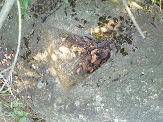 | 三角の掘り込み。手洗い用の水貯めか? | 石室から甲山八十八ヶ所60番の宝塔を望む | |