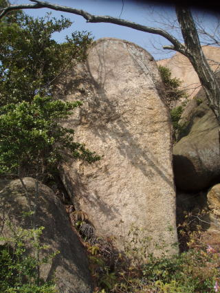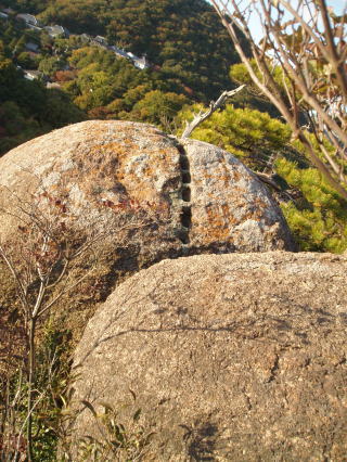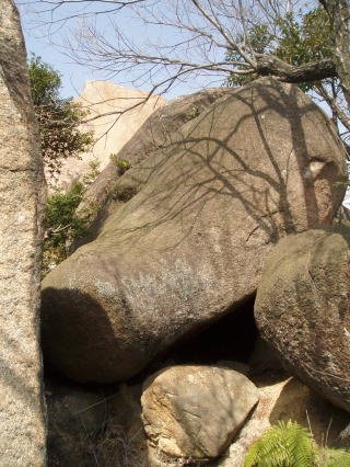 | たこ坊主 この岩にも「丸に点」の家紋がある。 |
