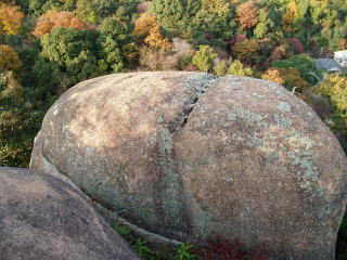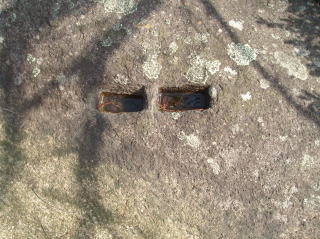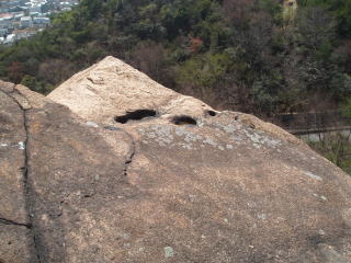 | 岩の頂部にはボルトが打ち込まれている | 岩には矢穴が縦に走っている。 | |