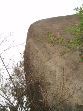 | ボルダー西側面 | ボルダーの東側面。頂部が大きく欠けている。 | |