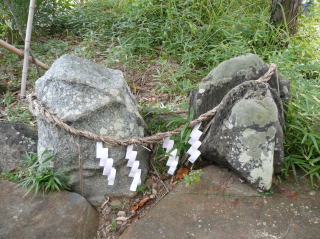 九日社には、リンガ(陽石)とヨナ(陰石)の磐座(文献2)が東西に並んで鎮座している。