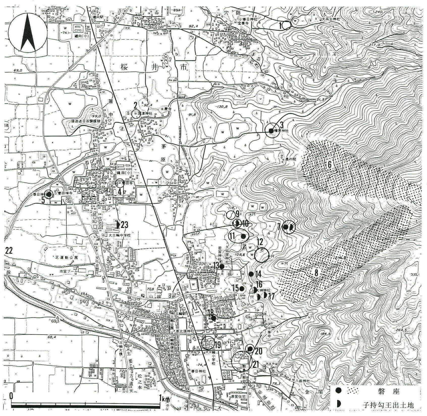 図5に掲載した磐座マップは、大神神社発行のパンフレット『三諸の神奈備 三輪明神』をベースに作成したものである。