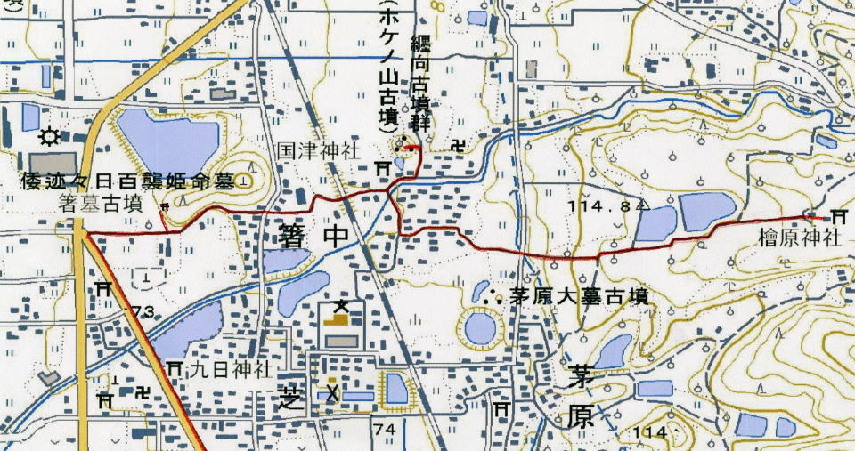 | 図29 檜原神社・国津神社・ホケノ山古墳・箸墓古墳・九日神社の位置 |
