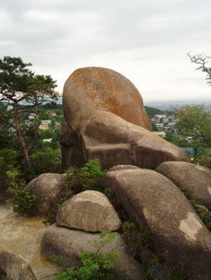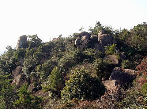 この岩と調査対象との一致は必ずしも明確でない。甲山に向う顔のような岩が頂上にある。