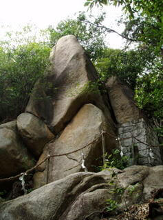 太陽石から203m南にある大きな岩である。