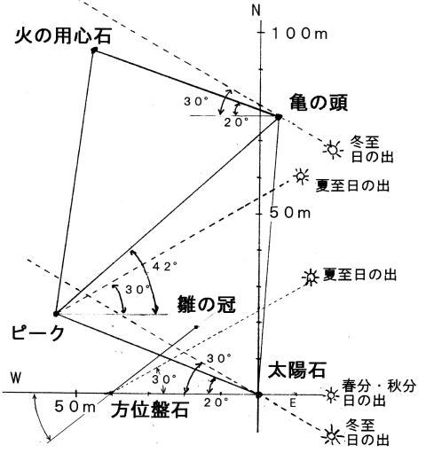 図1に見られるごとく太陽石・陽石・甑岩は南北線上にならんでいる。