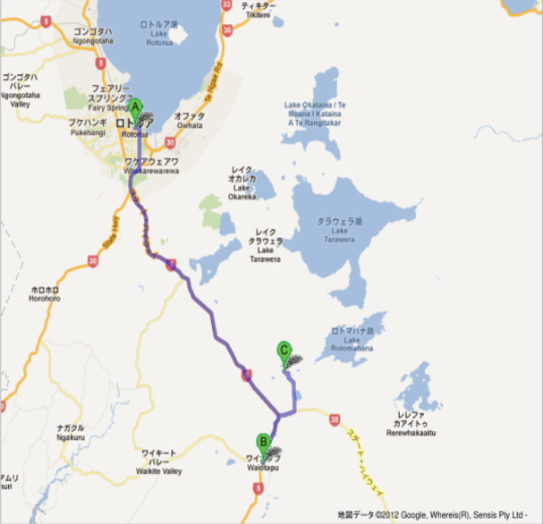 ロトルア市内からワイマング | 片道 20k 約20分 |