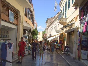 アテネ随一の観光スポット、プラカ地区の大通り |