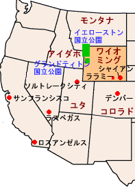 | ところがこの会話の中で、“アイランド3で待つように”と言われたアイランドの意味が判らない。 アイランドは島のコトとは判るが、“島の3で待て”といわれても島なんか無いしと、いろいろやり取りしていて、フッと外を見たら車の発着している柱に1から順番に番号が書いてある。そして車に乗り降りしている場所は一段高くなった安全地帯だ。そうか“アイランドとは安全地帯のことや”とようやく判った次第、フウッ〜!これでは先が思いやられる(^o^;)。 午後6時過ぎ無事ホリデイイン・インターナショナルエアポートにチェックイン イエローストーン・グランドティトン両国立公園への行き方としては、日本からだと直行便は無いので、いったんサンフランシスコかロスアンゼルスへ飛んで、アメリカ国内線に乗換えソルトレークシティかデンバーを目指し、そこからは飛行機でグランドティトン国立公園内の玄関口ジャクソンホール空港へ、そしてジャクソンホール空港でレンタカーを借りて両国立公園を回るというコースが多いようだ。 ソルトレークシティで車を借りて公園へというコースもあるが、約7時間の単調なドライブが必要なので大変だが、飛行機だと約1時間弱で行ける。 私の場合、関空⇔サンフランシスコ⇔デンバー⇔ジャクソンホール空港と、すべてユナイテッド航空を利用して行った。というのもユナイテッド航空はデンバーがハブ空港なので、便数も多くて何かと便利そうだった。 関空からジャクソンホール空港までは、時差の関係もあり時間的には一日で行けなくもないが、万が一の乗換えの遅れや、到着後の夜の運転を考えると、そんなに急ぐこともなしとデンバーで一泊し、次の日朝一の便で国立公園を目指すことにした。 |